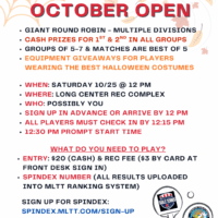 Hello Everyone! Are you ready for another AWESOME table tennis tournament? Sunrise Table Tennis Club is hosting the SUNRISE SPINDEX OCTOBER OPEN and you’re invited! Date & Location: This table tennis tournament is taking place on Saturday, 10/25 at the …Continue reading →